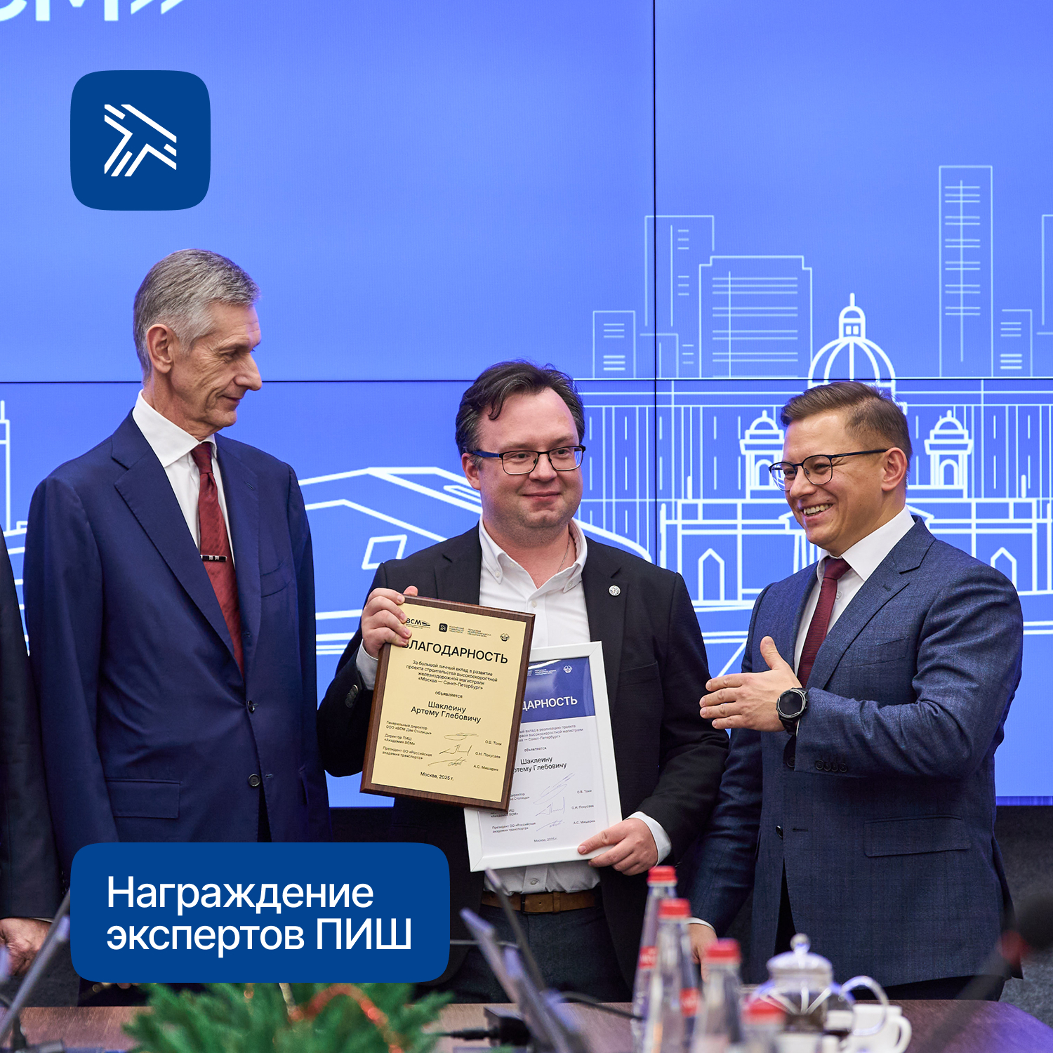 Благодарственными письмами и памятными стелами за значительный вклад и высокий уровень профессиональной экспертизы в рамках проекта ВСМ награждены: