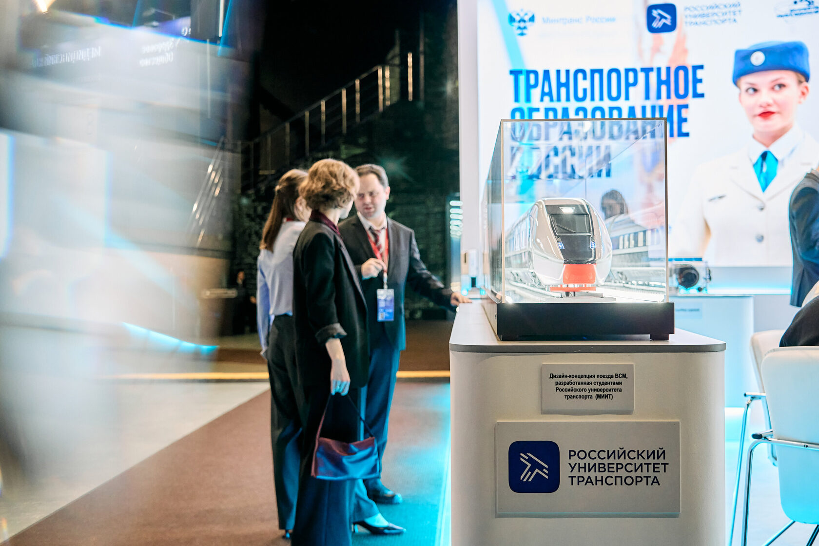 Гостю были представлены ключевые разработки ПИШ «Академия ВСМ». Первый заместитель министра транспорта России Константин Пашков и директор ПИШ Олег Покусаев продемонстрировали студенческий макет поезда — инженерную модель будущего транспорта, созданную молодыми специалистами РУТ в рамках проектной деятельности.